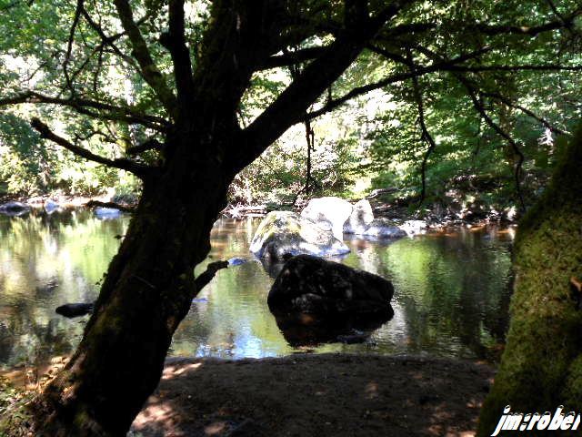 Comme annoncé nous poursuivons la balade dans cette belle portion de rivière la plus accidentée de son parcours ou les rives sont boisées et abruptes d'où émergent de nombreux blocs rocheux en suspension et un lit de cours d'eau encombré de ses rochers qui permet l'animation du cours d'eau et en font le principal caractéristique du paysage et de son état sauvage où le peintre Jean-Baptiste Corot avait l'habitude de venir peindre ses tableaux dans les années 1850 .